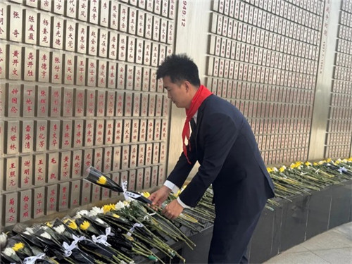 在庄严肃穆的氛围中,少先队员和老师们手捧鲜花,迈着沉重而坚定的步伐,依次走向烈士纪念碑,将手中饱含敬意的鲜花轻轻摆放在碑前。