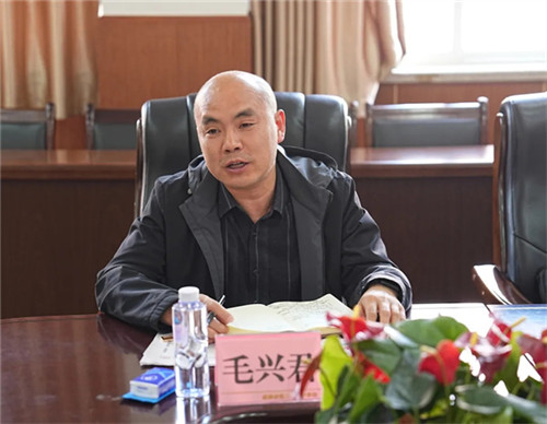 谢江林校长汇报了学校省级课题开展经验,并就学生军训情况的现状、难点和未来需求进行交流。