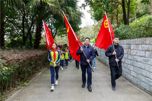 活动当天,队员们在学校党员和团员教师的带领下,整齐列队前往革命烈士纪念地。在庄严肃穆的氛围中,全体师生齐声高唱国歌,表达对祖国的无限热爱与敬意。随后,全体人员为革命先烈默哀,深切缅怀他们的英勇事迹。
