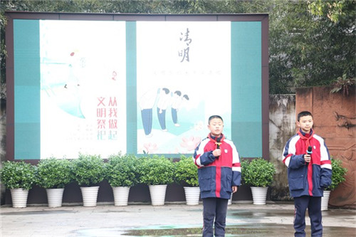 4月1日上午,成都市文翁实验中学七年级(5)班学生进行了“在国旗下成长——立德树人主题教育”(第四十五期)“缅怀先辈承遗志,继往开来启新篇”主题展演活动。