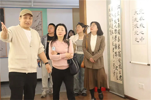 在张充老师的带领下明湖小学一行参观了胜西小学的漆器工作室,张老师毫无保留地分享了辅导学生美术作品的方法,为老师们打开了创意与技巧的大门。同时讲述在校园文化建设中,美与摄影的创意实践,让老师们看到了校园文化在美育中的独特魅力与无限可能。