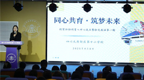 2025年4月8日晚,四川天府新区第十小学校园里星光熠熠,一场以“爱的对话”为主线的教育创新实践——校家社协同育人中心成立仪式暨“拾光夜话”第一期活动正式拉开帷幕。