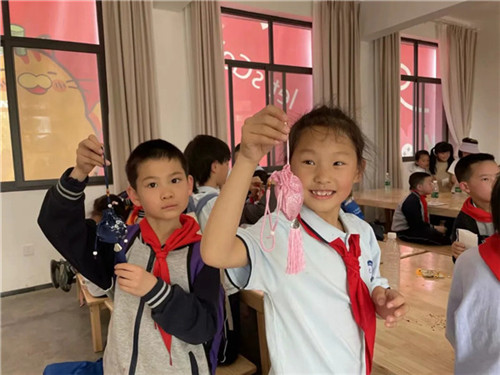 低年级孩子穿针引线,将散发芬芳的陈皮、艾草、丁香等中药材精心配比,装入香囊。清香的柑橘、艾叶味既能驱散蚊虫,也能防疫避害,孩子们在巧手制作中,不仅了解了橘皮的芳香避秽之效,更感受到传承千年的中医药智慧。