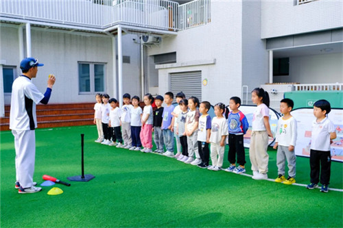 活动伊始,专业教练用有趣的方式讲解垒球知识。同学们认真学习握棒、击球动作,模样专注又帅气。