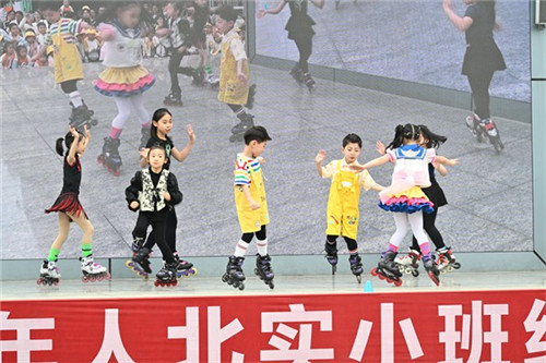 升旗仪式后,管乐团奏响激昂乐章,啦啦操团队活力热舞,把气氛推向高潮。武术短兵队、足球小将们也来助阵,仿佛在说:“速度没极限,梦想不停歇!”还有世界轮滑冠军朱思怡姐姐亲自带领轮滑小将们呈现精彩表演,她时而以高难度动作示范专业水准,时而与小学员们互动展示。此刻,运动精神的传承与竞技魅力完美融合。