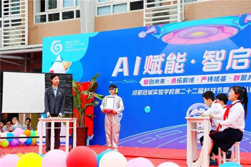 四月的校园,春意盎然,科技与鲜花共同绽放。4月16日上午,成都冠城实验学校(原成都七中实验学校)小学迎来了第二十二届科技节暨第十八届校园花博会的盛大开幕。这场以“AI赋能·智启成冠”为主题的盛会,不仅展示了师生们的科技创新成果,更将科学探索与自然教育完美融合,为孩子们开启了一场别开生面的成长之旅。