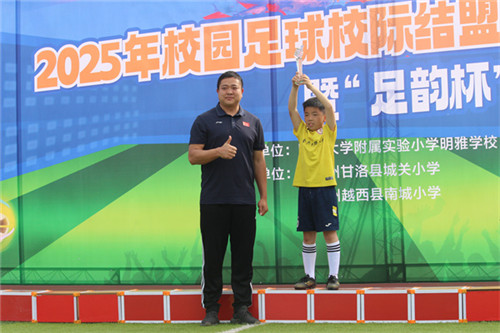4月30日,四川大学附属实验小学明雅学校与凉山州甘洛县城关小学、越西县南城小学携手,以足球为纽带,共同举办了2025年校园足球校际结盟交流活动及“足韵杯”班级联赛闭幕式。参加本次活动的还有金花桥街道陆坝社区代表,以及礼仪职业中学、墨池书院中学等兄弟学校的领导和嘉宾,川大附小明雅学校校级家委会成员和各班家长。此次活动以“以球育人”为核心理念,通过比赛竞技、校际间的互动交流以及家庭与学校的融合,全面展现了足球运动的独特魅力及其在教育中的重要价值。
