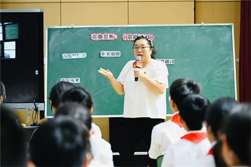 陈宏老师与孩子们共同破解《歌唱祖国》的音乐密码,感受歌曲背后,社会主义建设时期中华儿女为祖国繁荣富强奋力拼搏的爱国之情。旋律与历史同频,童真之声奏响新时代爱国交响曲!
