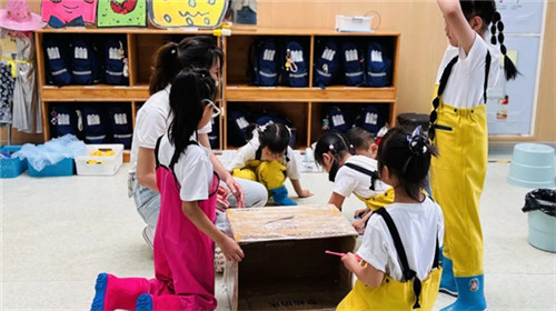 在罗莉老师呈现的《小小造船师》活动中,孩子们按自己的想法自主设计船只,并在造船过程中与同伴分工合作,体验了从“制作船只”到“成功载人”的持续成就感,有效增强了自信心与自豪感。参会教师们现场观摩,深入了解了幼儿在游戏中的自我肯定行为及教师的引导策略。