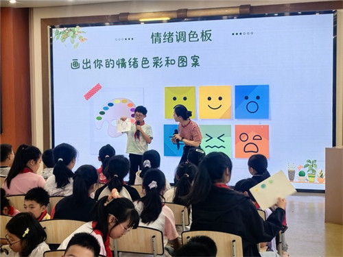 在文翁学子期待的目光中,刘老师以风趣的自我介绍和游戏“雨点协奏曲”为导入,拉近了师生间的距离,活跃了课堂气氛。通过讲授、活动与分享,孩子们在循循善诱中认识了情绪,知道不同情绪产生的原因,在觉察自我情绪后学会用合适的方式表达和调整情绪,做情绪的小主人。