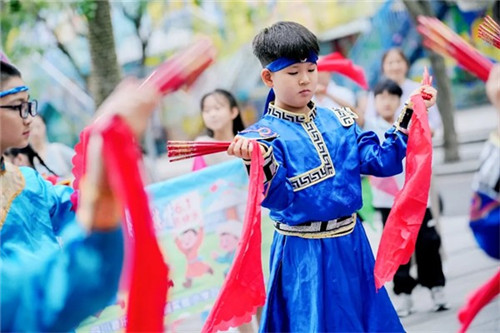 当晨风拂过音乐大道,川音附小的孩子们化身朵朵民族之花,用艺术为笔,以创意为墨,在府南河畔画出一道流动的中华文化长卷。这个六一,他们以国际理解教育为谱,奏响“多彩民族文化”的童真乐章。