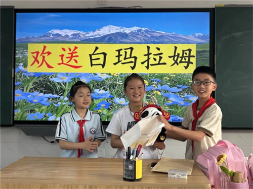欢迎仪式结束后,带着全校师生的祝福,白玛拉姆走进四年级二班课堂,开启与南区学子的共同学习生活之旅。“课堂携手探真知,文化碰撞绽火花。”班级里,一场精心筹备的欢迎仪式早已就绪,同学们纷纷送上礼物,热情的拥抱和灿烂的笑容,瞬间消融了初见的陌生,拉近了彼此距离。