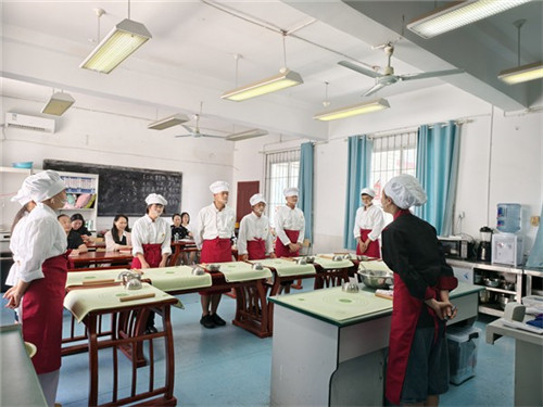 专家组首先走进培智职业高中课堂,观摩了由职高班陈尹老师主教、李陈媛老师助教的中西面点专业课——《有趣的手擀面》,教师通过步骤讲解、全流程示范、微视频提示,系统展示了制作手擀面的精细化流程。学生在老师的巡回指导下,进行任务分解、实践操作、成果评价,学校的中职课堂教学获得大家高度评价。