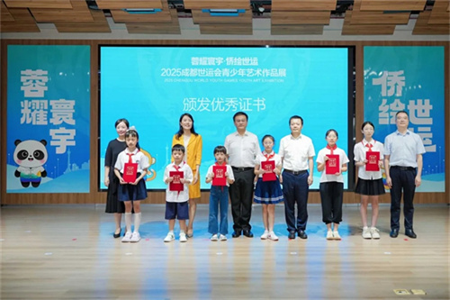 7月31日,“蓉耀寰宇·侨绘世运”2025成都世运会青少年艺术作品展在新都区新时代文明中心开幕,成都市委统战部副部长、市政府侨办主任秦臻,成都市教育局党组成员、副局长敬仕勇,新都区委书记、区长魏柯,以及在蓉侨界代表人士出席活动。
