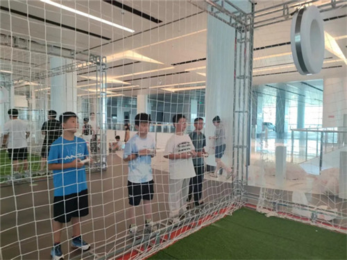 面对成人选手、高校学子及专业俱乐部队员,首次接触40厘米大球的同学们毫无畏惧,通过简单的认识全新的设备,并快速掌握大球的飞行特性和比赛规则。