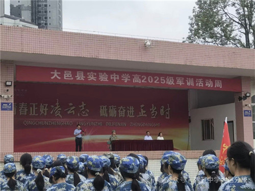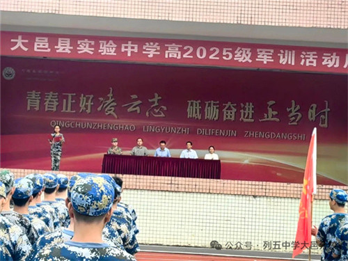当晨曦微露,号角声起,大邑县实验中学高2025级新生军训动员大会于8月23日在学校操场举行。本次军训旨在增强学生国防意识,锤炼意志品格,培养集体主义精神。学校党总支书记李华清、校长王维荣、党总支专职副书记赵焱、副校长任冠强,大邑县武装部军事科参谋长杨寒冬等出席大会,与全体高一新生共同开启为期6天的军训征程。