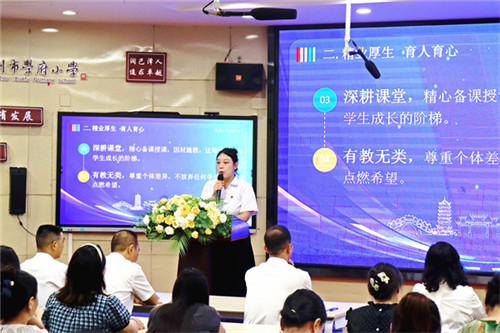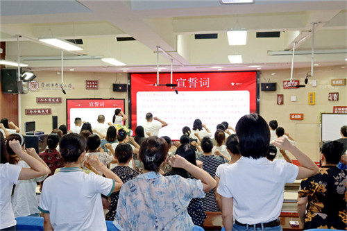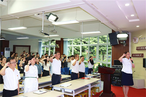 接着,全体教师在叶丽副主任的带领下庄严宣誓:忠诚党的教育事业,贯彻党的教育方针,弘扬教育家精神,以赤诚之心践行“为党育人、为国育才”使命……坚持以躬耕之志奉献教育强国伟业,为培养德智体美劳全面发展的社会主义建设者和接班人奋斗终身!