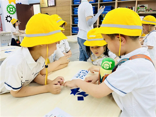 为了让幼儿更全面地了解小学环境,活动特别设计了定向游戏环节。幼儿们在地图的指引下,分组参与“科创馆七巧板大闯关”“器械室拍球小达人”“户外操场格子跳跳乐”等六项趣味任务。通过游戏化探索,幼儿们在轻松愉快的氛围中加深了对小学环境的认知,培养了自主探索能力与团队协作意识。