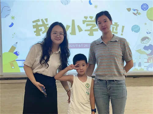 新光小学新生贴“阳光星宝”特制徽章,正式加入温暖大家庭