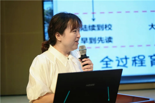 金融城校区执行校长周玲回望校区筹备的点点滴滴,动情呼吁老师们以共建者之心熔铸校园精魂,以创新者之锐拥抱AI时代,以同行者之诚深耕课堂。她提出的“双轮备课深研课标学情”“无思考不集备”“阅读+同伴切磋促成长”等理念,为老师们指明了新学期的行动方向——既要做金融城校区的“创校者”,更要做学生成长的“引路人”。