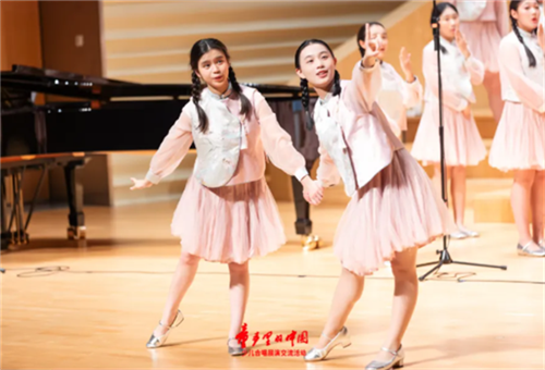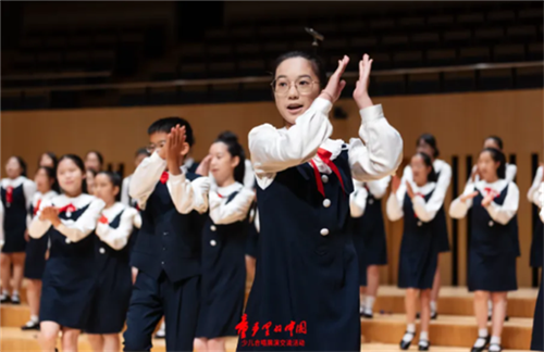 苏州吴韵少年艺术团合唱团在王泊人、叶译两位指挥的指导下挑战技术极限,令童声潜能释放出无限张力。合唱团呈现了童声High降E的“标准化生产”实现路径。孩子们对指挥“音色不能变!”的指令的快速响应,是瞬时纠错机制的充分体现,这为低龄团队的专业化训练树立了标杆。在作品演唱部分,则展示了“技术为骨,音乐处理为魂”,技术训练与音乐处理并重的辩证关系。同时叶译老师就“如何保持音色统一”现场进行了示范练习。