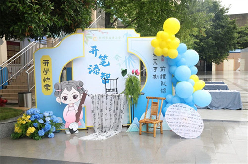 童真的欢迎板报,包扎的崭新书本,精美的书画作品,雅致的古风环创……四川省彭州市延秀小学的老师们用一双双巧手将学校装点成充满爱与期待的“成长小天地”,只为给萌娃们送上一份满含心意的入学惊喜。