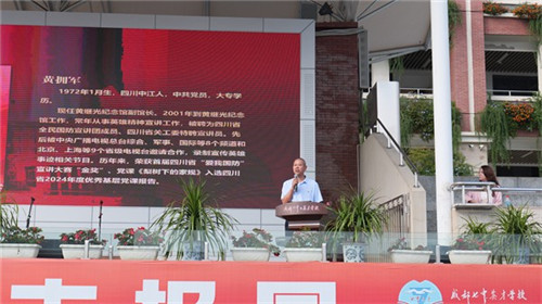 庄严的升旗仪式结束后,黄继光纪念馆副馆长黄拥军深情讲述革命先烈黄继光的英雄事迹。他的讲述,既有对战斗细节的生动还原,也有对英雄坚定信念与无畏精神的深刻解读,一步步引导同学们回溯那段烽火岁月,感受英雄的脉搏与温度,从而深刻理解红色基因的时代意义,激发同学们传承精神、砥砺前行的使命感。