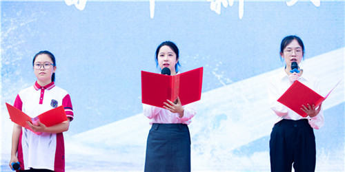 “以青春为刃,磨砺创新锋芒!以奋斗为桨,笃行人生航向”4名新入职教师与2名学生代表联袂带来《百年薪火传》朗诵,他们以“以青春为刃,磨砺创新锋芒!以奋斗为桨,笃行人生航向”的铿锵语句开篇,再用饱含深情的语言诠释“和合共生”的校园理念,传递出师生携手共进、共促成长的坚定信念,让“砺新笃行”的主题在朗诵中具象化。