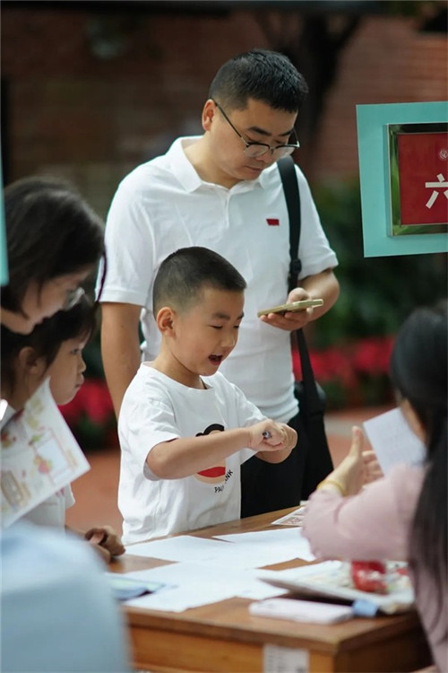 从映雅鉴到西校门,孩子们牵着爸爸妈妈的手,扫码、发现、交流、欢笑。在这个过程中,他们自然而然地认识校园,也种下了自主探索的种子。校园不就是兴趣的生发点吗?开放、自主、包容、大气。
