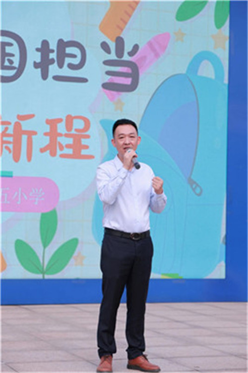 学校校长周鹏飞压轴出场。他巧妙地用最近大热的《浪浪山小妖怪》作为引子,从“小妖怪”不畏艰难、渴望看世界的精神,谈到红船先辈的初心,再落到每一位天府五小学子的日常。愿同学们承家国担当,勇敢闯荡,书写自己的“浪浪山传奇”!