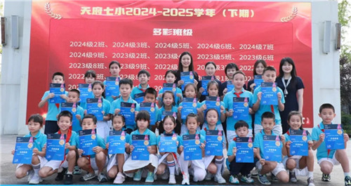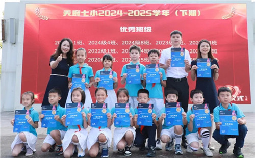 主持人宣读了天府七小2024—2025学年(下期)“优秀班级”“多彩班级”获奖名单。校长们为学生代表颁发这份沉甸甸的荣誉。
