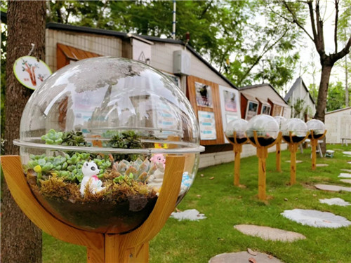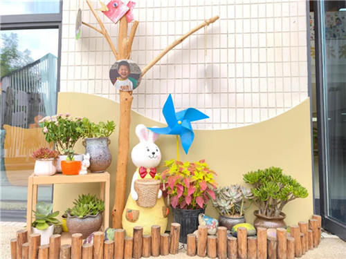 门口的咕咚水乐园正冒泡招手,超酷的战斗飞机在等候挑战,多肉角的小植物晒着太阳盼小朋友驻足……