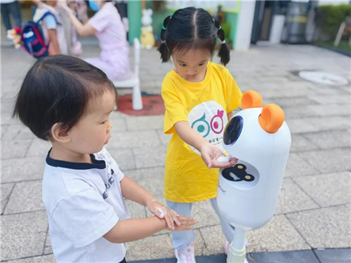 熟悉的洗手、晨检环节,瞬间勾回小朋友们对幼儿园生活的记忆。“小黄人”早早守在门口、小班教室,把“大带小”的温暖藏在细节里。热情牵起弟弟妹妹的手,教他们搓泡泡洗手、排队晨检。大手拉小手,把胆怯变成勇敢的“小欢喜”。
