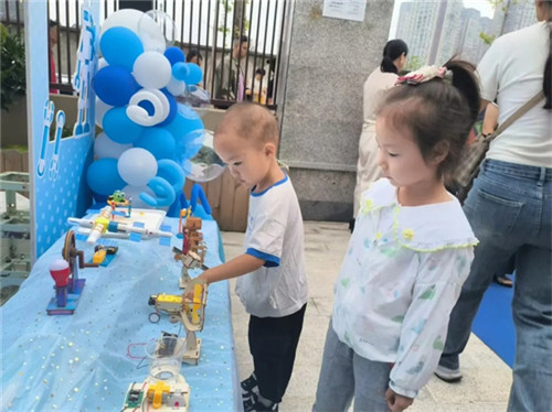 一进幼儿园,科学小实验展览区和“生活中的科学”展板便映入眼帘。孩子们通过观察有趣的实验,探索生活中的科学,不仅感受到了科学魅力,更在入园第一天就沉浸到浓厚的科技氛围中。