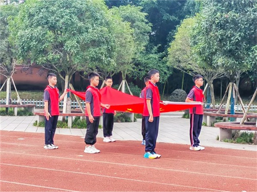 伴随着雄壮的国歌声,开学典礼正式拉开帷幕。五星红旗冉冉升起,全体师生肃立行礼,齐唱国歌。铿锵旋律中,是新学期的决心,更是对祖国的庄严承诺。