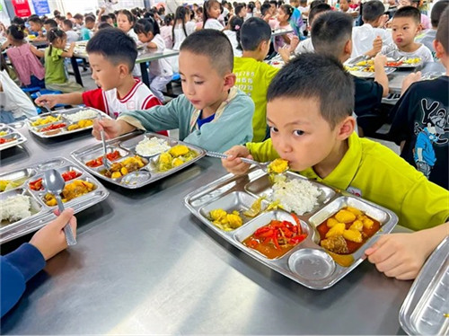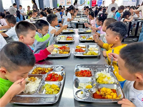 学校食堂早已准备就绪,干净明亮的环境、科学营养的配餐,致力于让每一个孩子吃得开心、家长放心。均衡饮食,为健康成长保驾护航。