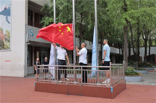 开学典礼在雄壮的国歌声中正式拉开帷幕,英姿飒爽的护旗手迈着铿锵有力的步伐护卫国旗入场。全体师生肃立注目,鲜艳的五星红旗冉冉升起,迎风飘扬。在这庄严的时刻,爱国情怀和奋斗理想在每一位师生心中激荡。