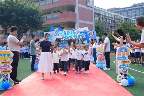 主持人热情洋溢的话语拉开了典礼的帷幕,一年级新生们在班主任的带领下,迈着稚嫩却坚定的步伐入场,全体师生用热烈的掌声和灿烂的笑容欢迎新伙伴的加入。新生们将带着对新校园的向往,在这里插上梦想的翅膀,收获知识的宝藏、纯真的友谊,在爱的阳光下茁壮成长!