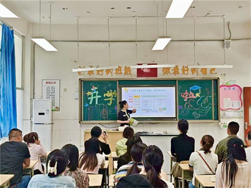 活动先以集体家长会拉开序幕,现场流程有序推进:首先播放校园宣传片《手》,让家长们直观感受校园风貌与育人氛围;接着,通过《2024年总结篇:砥砺深耕,筑梦蜀汉》,用视频清晰呈现学校过往的办学成就;最后由主持人登场,详细介绍学校领导班子的构成与职责,以及一年级教师团队的专业背景与教学理念,帮助家长全方位了解学校的底蕴、实力与师资力量,深切体会学校的育人初心。
