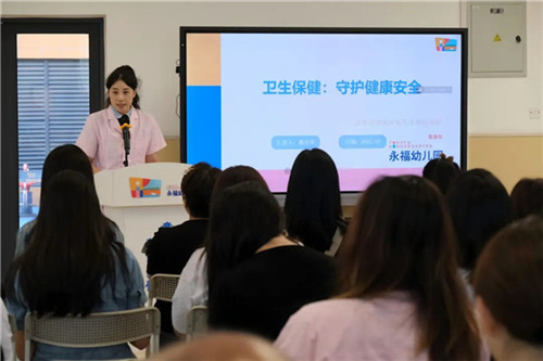 最后,保健医生从健康监测、疾病预防、营养指导、应急处理等方面进行了详细介绍。东升永福幼儿园会持续为孩子们营造一个安全、健康、科学的成长环境。