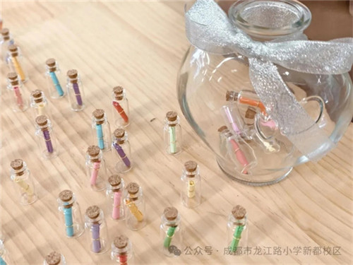 校门口,孩子们接过“烽火初心书签”,指尖触碰间,英雄精神已悄然扎根;“时光成长廊”上,10个跨越80年的历史节点依次铺展,4年级“乐学向导”现场讲解抗战小故事,让孩子们在行走中读懂“家国”与“成长”的深刻关联;班级里,孩子们写下新学期目标投入“初心瓶”,成为对抗战精神最生动的“少年回应”。