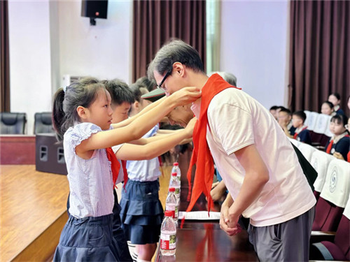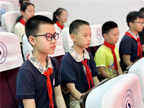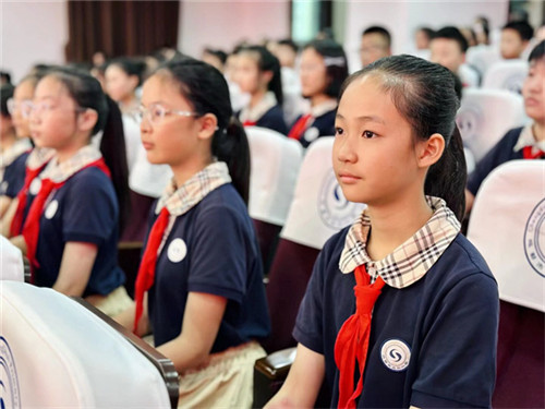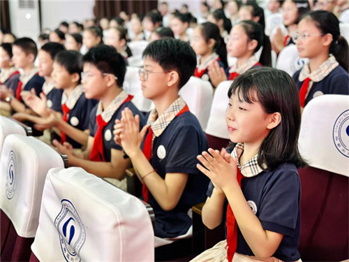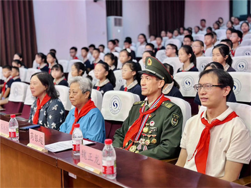芮银超伯伯的讲述,如同一盏明灯,照亮了少先队员们的心灵。孩子们身姿挺拔如松,目光中满是崇敬与坚定,认真聆听着每一个感人至深的细节,仿佛他们就是即将在阅兵仪式上接受祖国检阅的士兵。讲座尾声,激昂的声音在校园里久久回荡 ——”奋斗有我,让青春无悔;强国有我,让祖国放心!”这铿锵有力的誓言,不仅是少先队员们对榜样的致敬,更彰显了新时代少年立志成才、报效祖国的坚定决心,让“强国一代有我在”的信念在校园里深深扎根。也让我们有理由相信,在未来的日子里,这些少年将会如同阅兵仪式上的钢铁洪流一般,成为祖国最坚实的栋梁。(孙林馨 马莎)