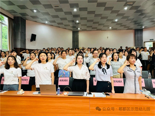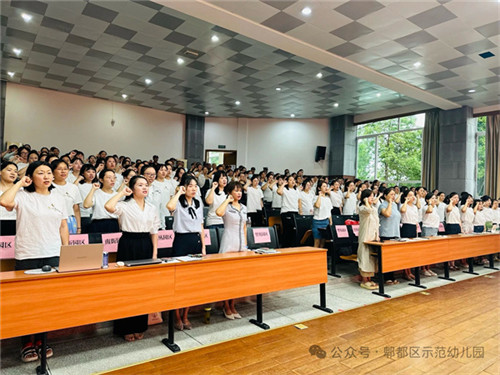 全体教师在大会上进行庄严宣誓,他们深知师德为立身之本,纷纷表示将以准则规范言行,用爱与责任护佑幼儿成长;未来会将培训所学转化为行动,落实立德树人任务,遵循幼教规律潜心培幼育人,争做“四有”好老师。(翁玉华 黎燕)