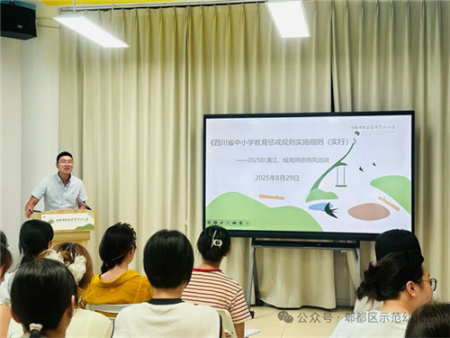 为加强师德师风建设、提升教师职业道德水平,郫都区示范幼儿园党支部书记罗小林园长牵头部署,组织集团五所园区于2025年暑假及9月教师节期间开展教职工师德师风集中专项培训。
