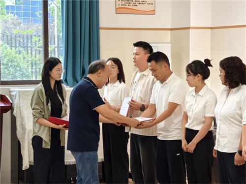 伴随着悠扬的音乐声缓缓流淌,12位师傅身着整齐的服饰,迈着沉稳而坚定的步伐,一步步走上仪式的舞台,每一步都透着教育者的从容与担当。当刘校长郑重地将那本沉甸甸的聘书双手递到每位师傅手中时,这张看似小巧的证书瞬间超越了“荣誉”的范畴——它化作一份沉甸甸的责任,将“以德为基,以肩为梯”的教育使命深深镌刻其中,既承载着学校对师傅们育人能力的信赖,更寄托着助力青年教师成长的深切期许。