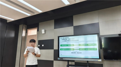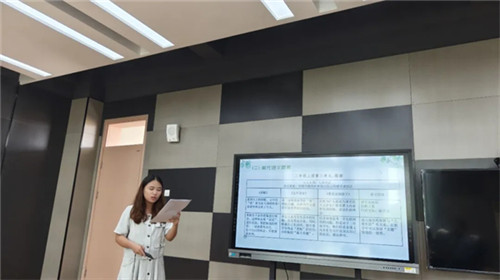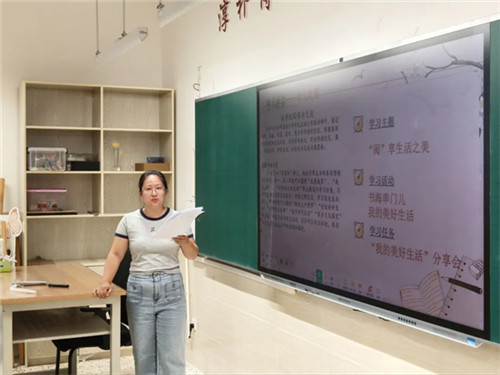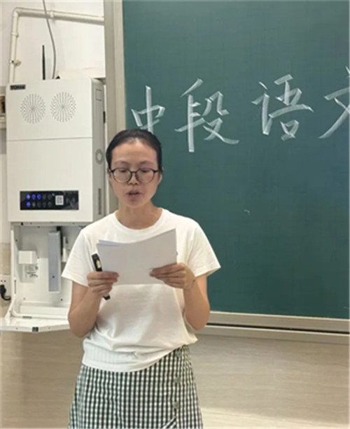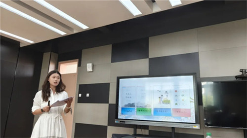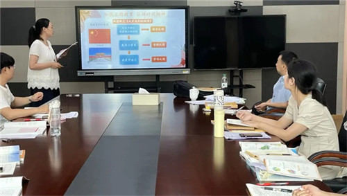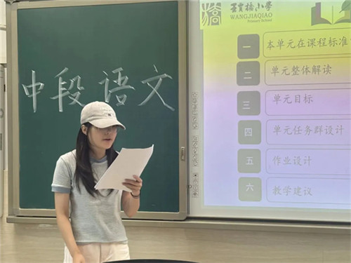 五年级语文组郭炳寅老师以《以单元整合为锚点,探寻五上语文核心素养落地路径》为主题,具体分析教材的内容,包括:教材的知识结构体系及变化、教材的教学目标、单元分析及教学建议等。然后以第一单元为例进行详细解读,依据课程标准,从教材内容、学生学情、情景任务发布和评价量表的确定等方面,进行了精准分析。六年级刘雨婷老师建议通过任务群教学、整本书阅读等方式落实教学目标,提升学生语言鉴赏能力;吴前钱老师围绕第三单元“有目的地阅读”,展开多维度解读。