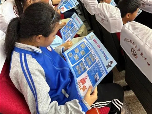 随后,周文以东部新区真实案例为依托,围绕青少年出行安全展开讲解。宣讲过程中,学生们全程专注聆听,认真阅读交通安全宣传单,遇到疑问时也主动向警官提问,现场互动良好。