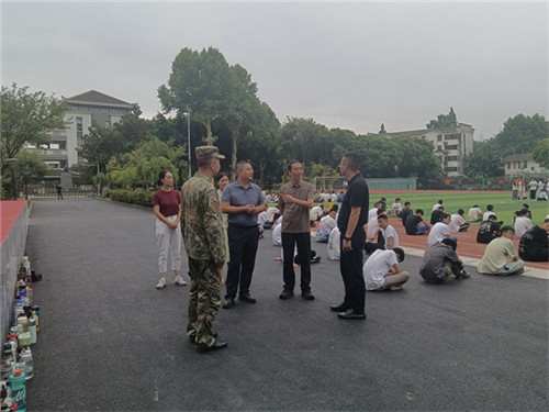 9月4日,青羊区区委常委、区人武部上校政委张胜、青羊区教育局中教科科长曾成军等领导到学校视察学子军训情况。在运动场,领导们细致了解训练进度与学子适应情况,看到学子们虽皮肤晒黑,却眼神坚毅,领导们频频点头,对学子们的蜕变给予肯定,叮嘱大家注意劳逸结合,在保证安全的前提下,珍惜军训时光。