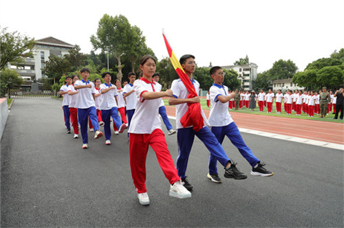 在清晨的熹微中,学校领导、驻校教官、全体高一师生全程参与,共同见证首届学子从“萌新”到“战士”的成长蜕变。