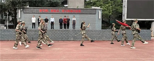 初一年级同学带来了精彩的军训棍术表演,动作整齐、气势昂扬,展现出新生力量的朝气与纪律性。
